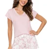 Pijama damă din bumbac cu pantaloni 3/4 – rafinament floral și confort natural